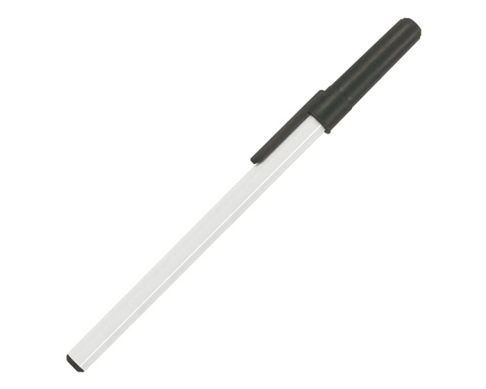 bolígrafo básico, línea económica, cuerpo blanco sólido y tapa en color.