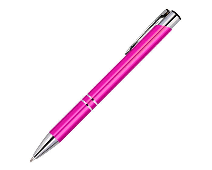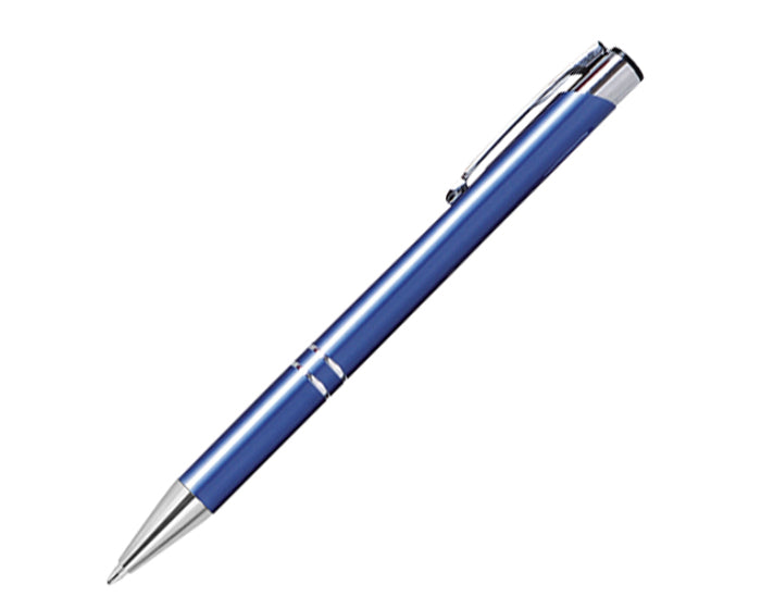 bolígrafo de aluminio con clip, punta y detalles en cromo. mecanismo de click.