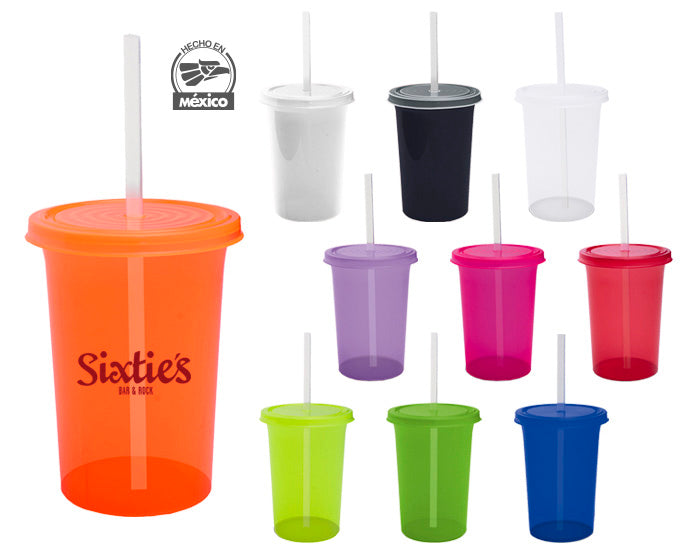 vaso de plástico con tapa a presión y popote. la tapa cuenta con un diseño que simula olas. cap. 470 ml. *bpa free.