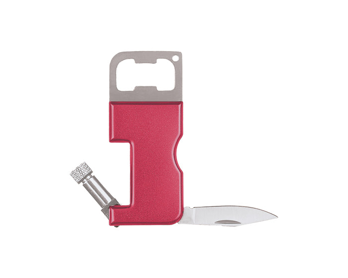 navaja multiusos de acero inoxidable en diferentes colores metalizados. incluye: destapador, navaja y lámpara de luz led. funciona con 3 baterías, las cuales vienen incluidas. presentación: caja en color blanco.