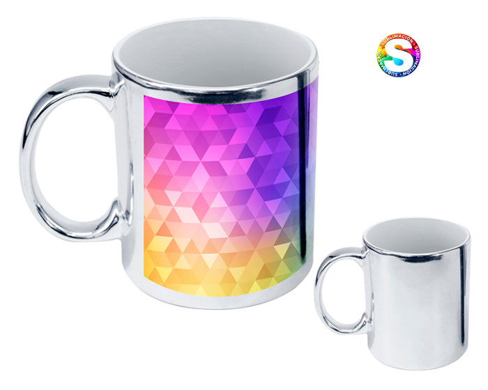 tarro de sublimación con exterior color plata metalizado e interior blanco. cap. 325 ml. (11 oz). temperatura y tiempo sugeridos para sublimar: 180 grados / 160 seg. venta en múltiplos de 12.