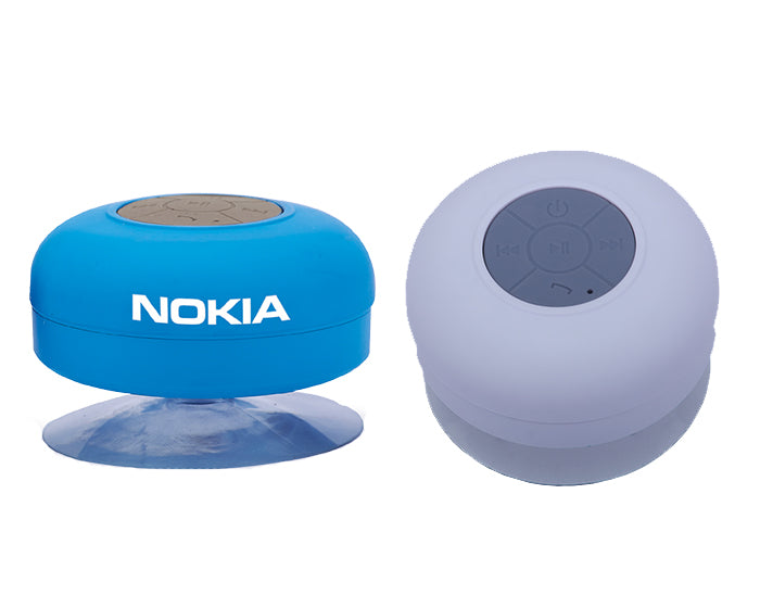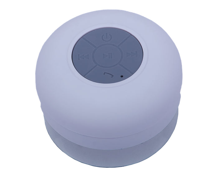 bocina bluetooth manos libres. cuenta con botón de encendido, controles de audio y base de plástico adherible a superficies como vidrio, cerámica y porcelana, la cual sirve también como soporte para tablet. no debe sumergirse completamente. incluye cable de carga. presentación: caja en color blanco.