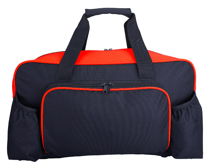 maleta deportiva, cuenta con 2 compartimentos, bolsa exterior de cierre al frente, asa central ajustable, asas laterales, base de cartón grueso de soporte y bolsilos laterales con resorte. cuenta con 4 pequeños soportes de plástico externos en la parte de abajo, para evitar que se maltrate al colocarla en el suelo.