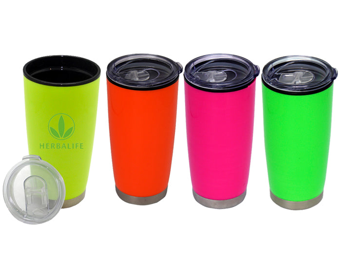 termo de plástico de doble pared, con cuerpo en acabado brillante. cuenta con tapa a presión y seguro deslizable. cap. 590 ml. presentación: caja en color blanco. *bpa free.