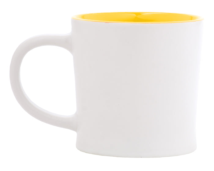 taza de cerámica bicolor con asa. textura interior de ondas. cap. 11 oz. venta en múltiplos de 12.