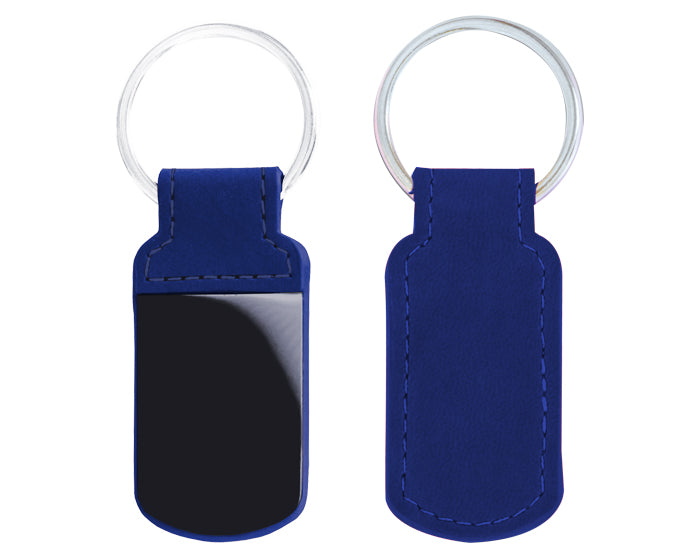 llavero de curpiel con placa metálica para grabado láser y arillo metálico reforzado.