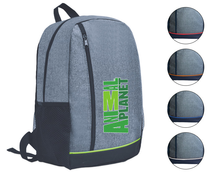 mochila tipo backpack con 2 compartimentos y correas ajustables. cuenta con 2 bolsillos de malla laterales, asa superior y respaldo acolchado.