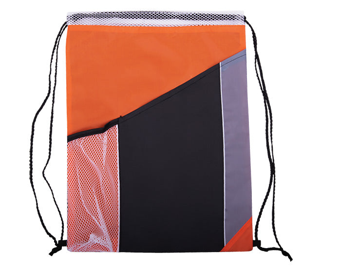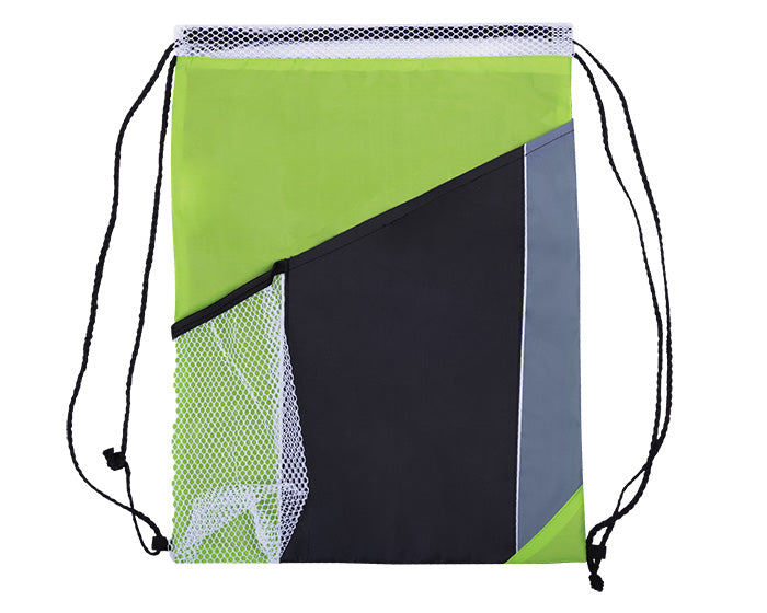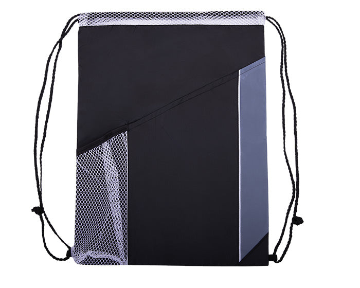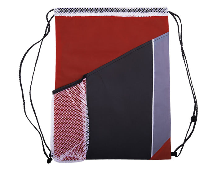 morral con jareta, compartimento exterior y bolsa lateral de malla.