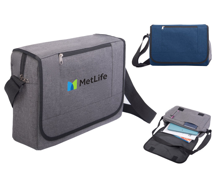 maletín con correa larga ajustable. cuenta con una bolsa lateral de malla y bolsa al exterior con cierre.