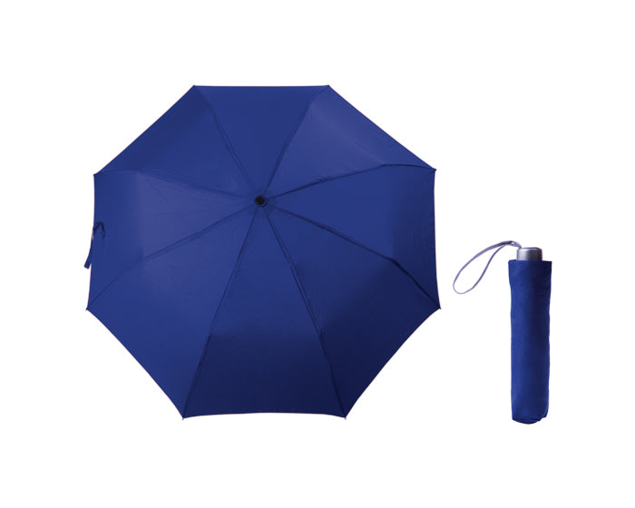 paraguas de bolsillo antiviento con apertura manual, varilla de fibra de vidrio y aluminio, eje de metal. cuenta con mango plástico de color y correa de poliéster. 8 gajos. incluye funda.