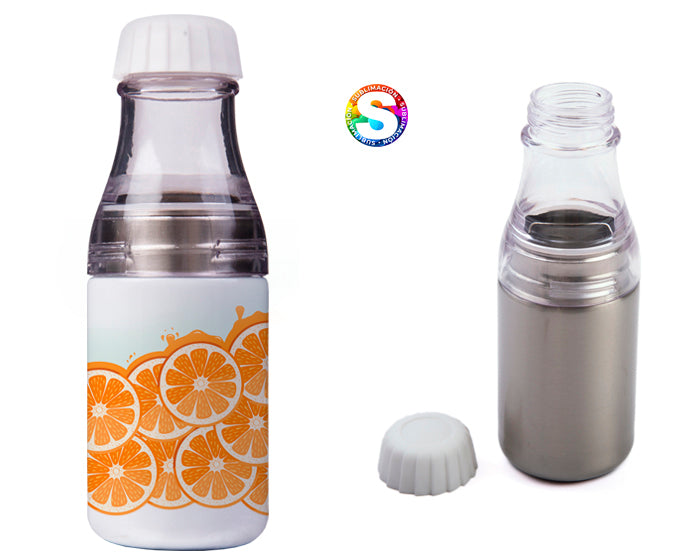 cilindro de acero inoxidable de sublimación. aviso: separar la parte de plástico al sublimar. cap. 445 ml. (15 oz). presentación: caja en color blanco. temperatura y tiempo sugeridos para sublimar: 195 grados / 45 seg.