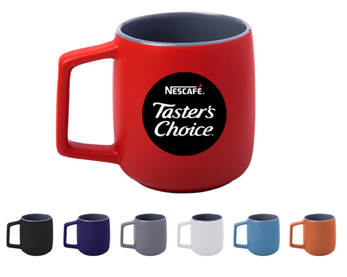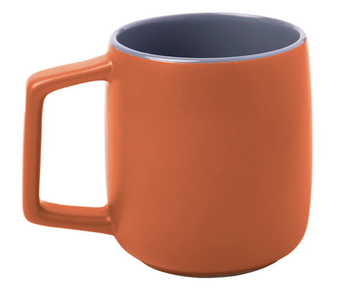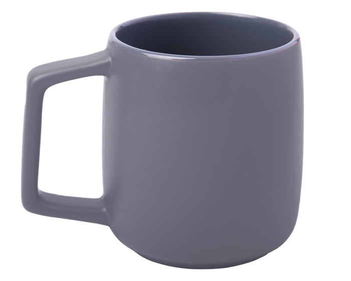 taza acabado mate, interior color gris brillante y asa cuadrada. cap. 14 oz. venta en múltiplos de 12.