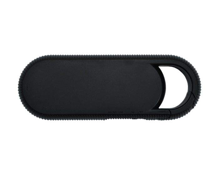 bocina bluetooth con manos libres y clip con gancho para transportar. cuenta con controles de audio y cable de carga. presentación: caja en color blanco