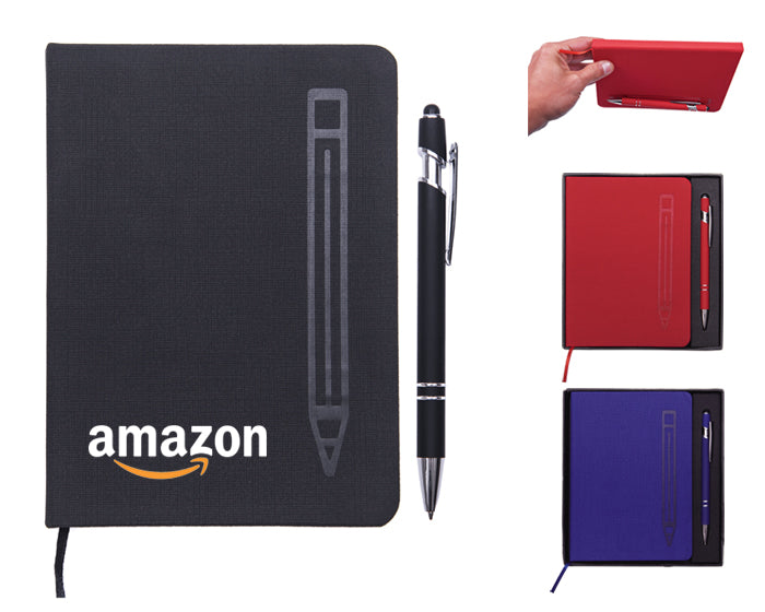 libreta personal con 80 hojas rayadas (160 páginas). cuenta con imán en la portada para sostener bolígrafo metálico y separador de listón. (incluye bolígrafo metálico). presentación: caja de regalo en color negro.