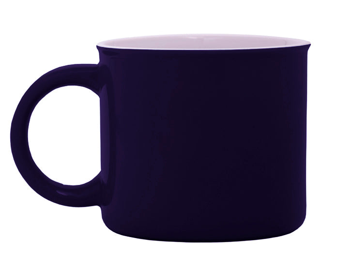 taza de cerámica bicolor acabado brillante de boca abierta, interior color blanco. cap. 15 oz. venta en múltiplos de 12.
