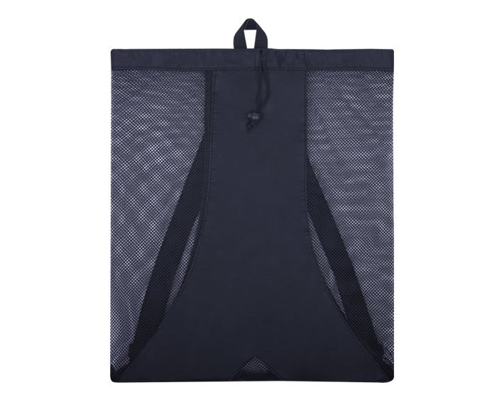 morral con diseño lateral de red que permite un secado rápido para ropa húmeda, cuenta con jaretas ajustables para colgarse y asa superior. compartimento trasero plastificado para colocar credenciales.