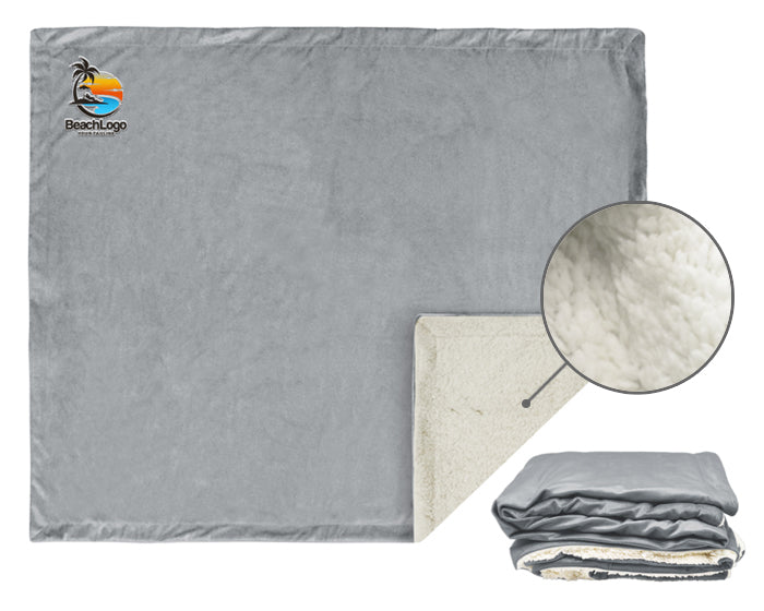 frazada personalizable con doble vista, con tela tipo borrega. incluye funda de pvc con compartimento para tarjeta de presentación con medida de: 13.8 x 11 cm.