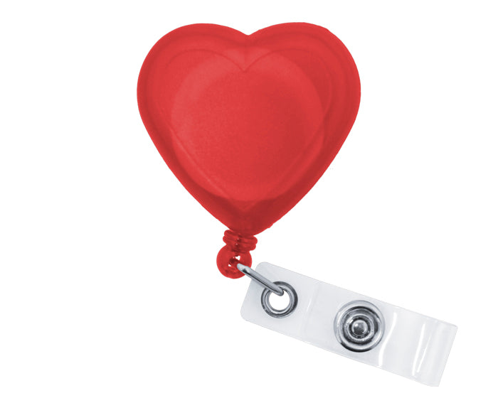 portagafete en forma de corazón, clip metálico en la parte trasera que funciona para sujetarse a la ropa, hilo elástico y broche para gafete.