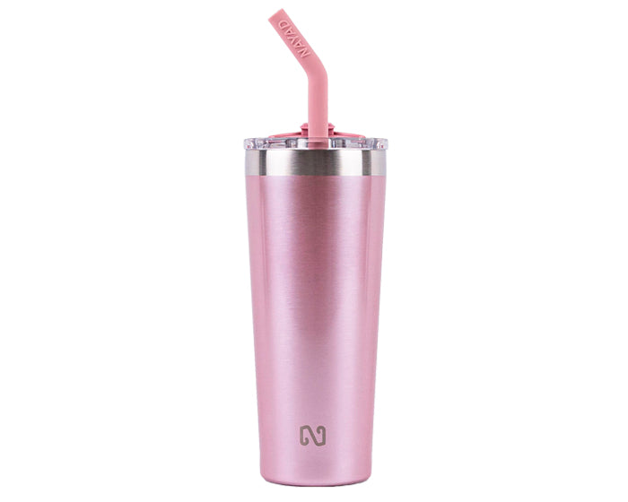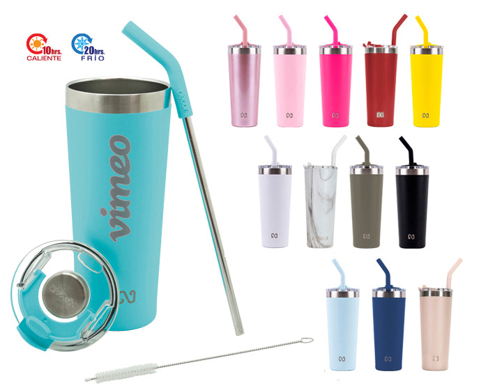 termo de acero inoxidable 304 de doble pared marca nayad insulado al alto vacío, cuenta con capa interior de cobre que permite mantener las bebidas frías por 20 hrs. y calientes por 10 hrs. tiene acabado de polvo plástico. incluye tapa de tritan con cierre a presión, detalle metálico en el centro y tapón abatible que permite beber fácilmente. popote de acero inoxidable con boquilla de silicón extraíble, cepillo de limpieza incluido. cap. 650 ml. (22 oz). presentación: caja de color.