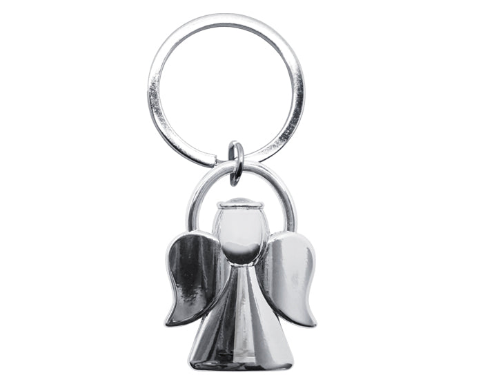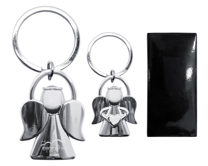 llavero en forma de ángel con arillo reforzado. presentación: caja individual de cartón en color negro.