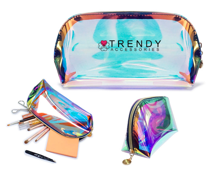 cosmetiquera de efecto tornasol. material repelente al agua. cuenta con cierre metálico.
