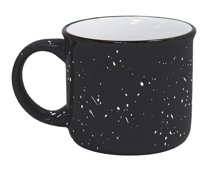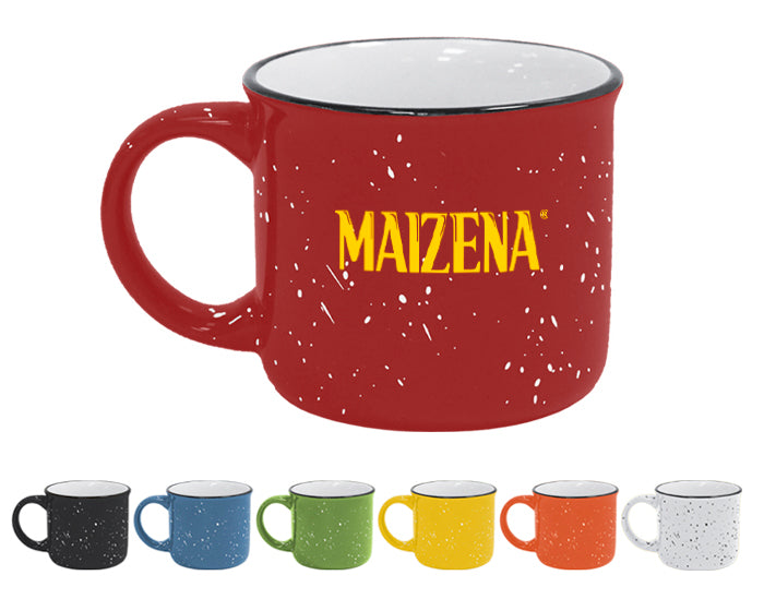 taza de cerámica tipo peltre de boca abierta con filo negro. exterior de color e interior blanco liso. cap. 14 oz. venta en múltiplos de 12.