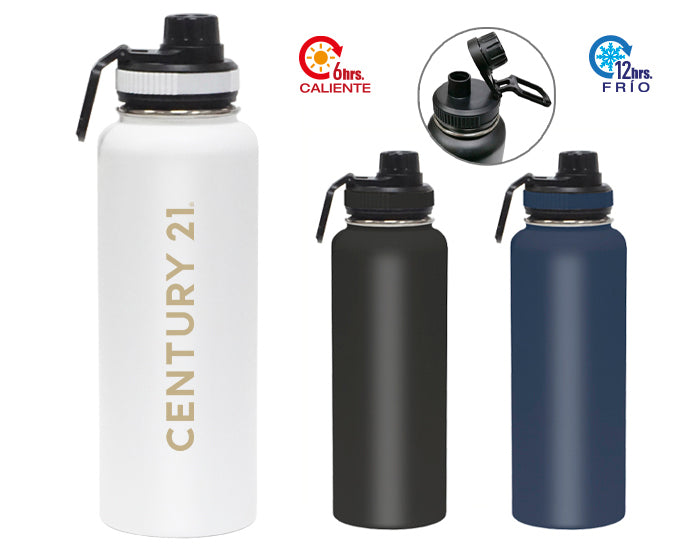 termo de doble pared insulado al alto vacío con acabado de polvo plástico. mantiene las bebidas frías por 12 hrs y calientes por 6 hrs. tapa de rosca con boquilla y asa para sujetarlo fácilmente. cap. 1,200 ml. presentación: caja en color blanco.
