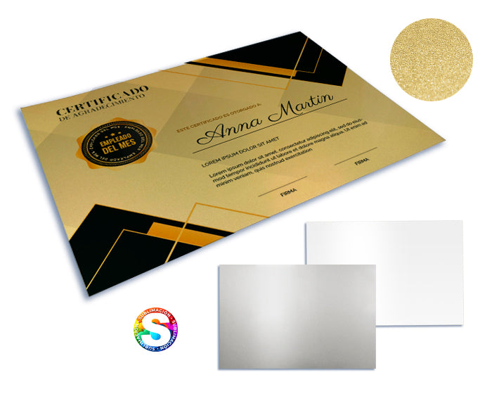 lámina de aluminio brillante, para sublimación. cuenta con protector de plástico para su manipulación.