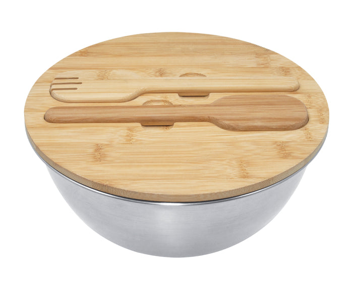 recipiente de acero inoxidable con escala de medida de 2000 ml. contiene tapa, cuchara y tenedor de bambú con imán. presentación: caja en color blanco.