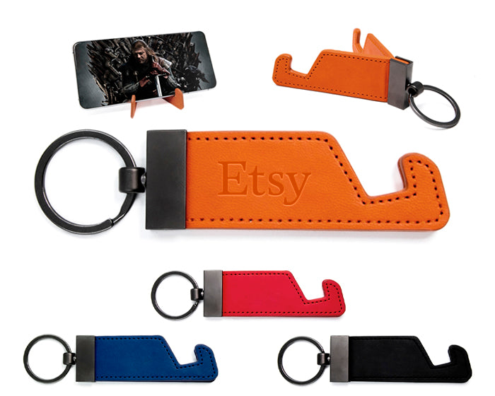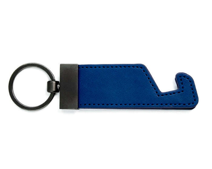 llavero/soporte para dispositivos móviles de pu con imán para compactarlo y arillo metálico reforzado. presentación: caja individual de kraft.