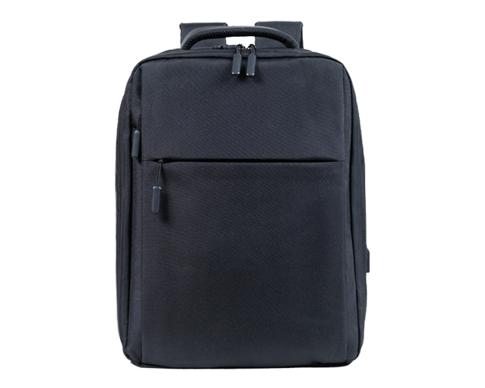 mochila backpack acolchada repelente al agua con compartimento interno para laptop de hasta 15.6 pulgadas con cinta de seguridad y broche de contacto, otro compartimento interno que abre a 180° con cierre con un bolsillo de malla con resorte para bebidas y otros compartimentos para accesorios, 2 compartimentos frontales con cierre y 1 compartimento en la base con cierre para guardar calzado o snacks, respaldo con tirantes y correas ajustables, cuenta con una banda trasera para sujetarse sobre maleta de viaje y asa para transportar. contiene un cable con puerto usb para conectar dispositivos móviles.