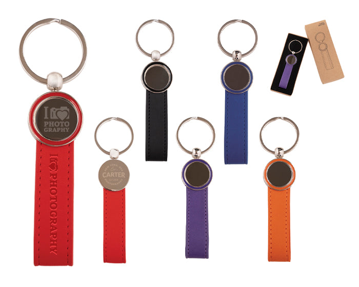 llavero con correa de termo pu y placa de acero inoxidable con arillo reforzado de metal. presentación: caja individual de kraft.