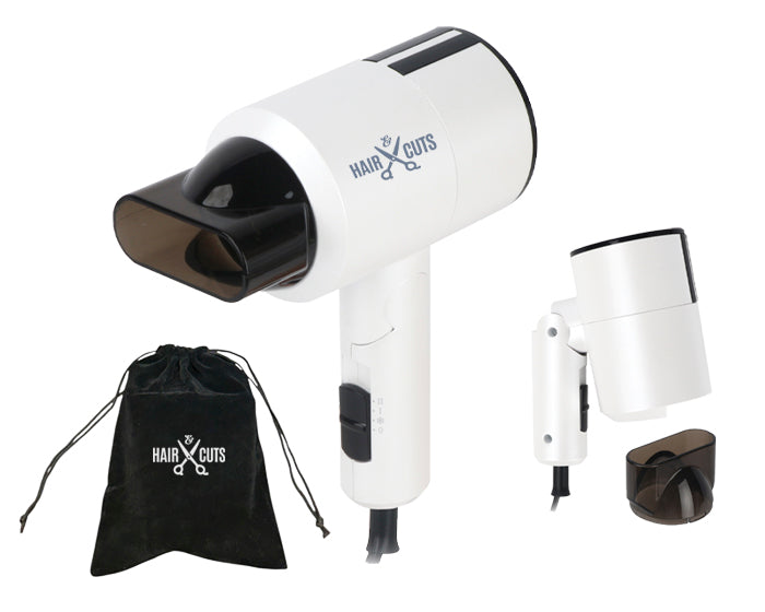 secadora plegable de cabello portátil con botón deslizable de encendido y apagado, se ajusta a 3 velocidades: 1 con aire frio y 2 potencias de aire caliente. incluye boquilla removible para alaciado del cabello.
