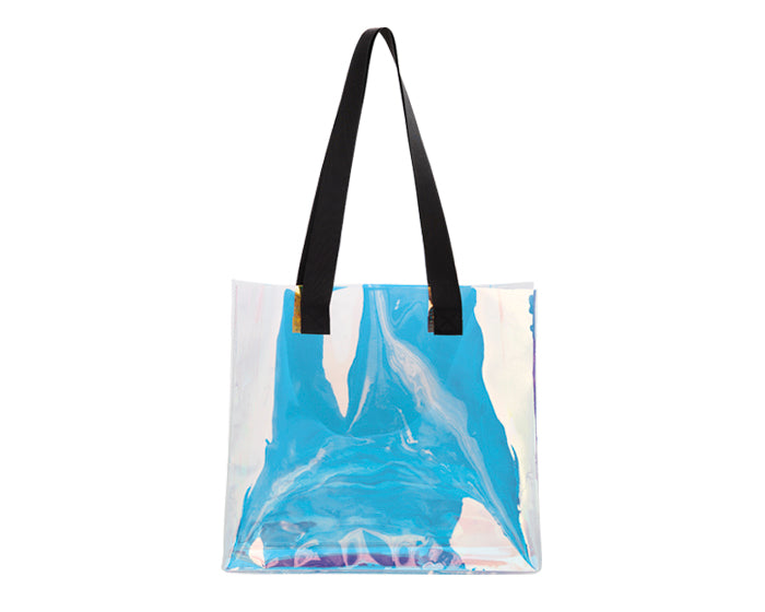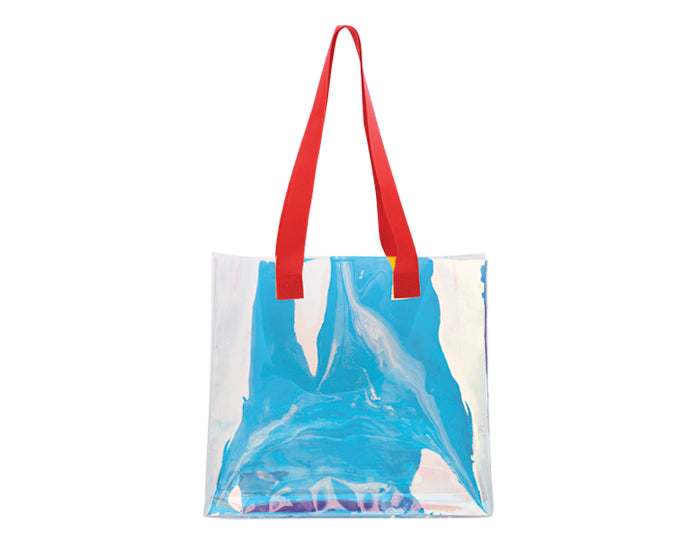 bolsa con fuelle efecto tornasol con asas de color de poliéster.