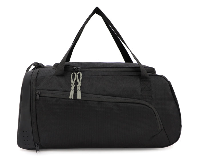 maleta estilo deportivo de poliéster texturizado, el compartimento principal abre en forma de tapa lateral con 2 tiradores de cierre, para darle mayor amplitud al momento de su uso, cuenta con una pequeña bolsa interna con cierre, para accesorios pequeños. la parte exterior trae un amplio bolsillo frontal con cierre, un compartimento lateral de curpiel para zapatos y del lado opuesto, una bolsa lateral de malla. la parte de curpiel se extiende en toda la base de la maleta para mayor protección en zonas húmedas. tiene correa larga ajustable al hombro y 2 asas cortas para su fácil manejo.