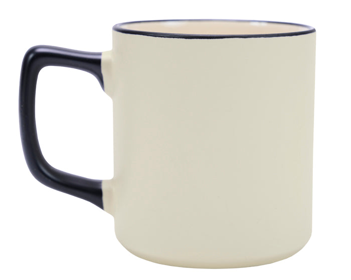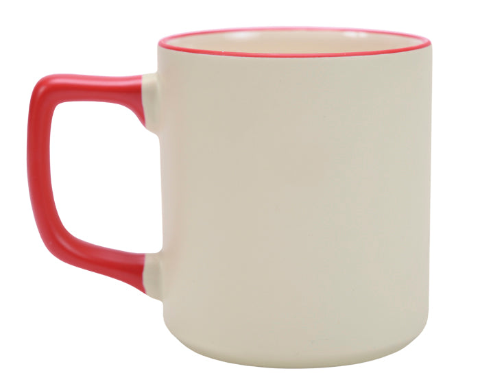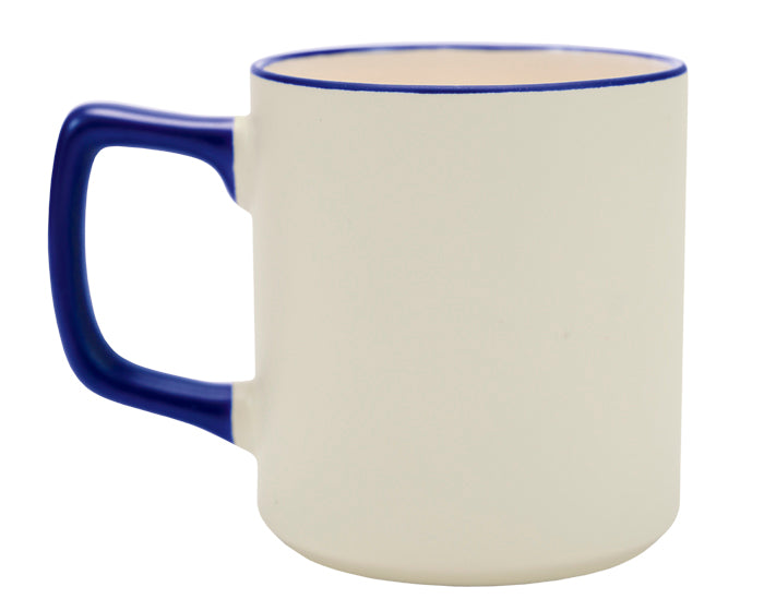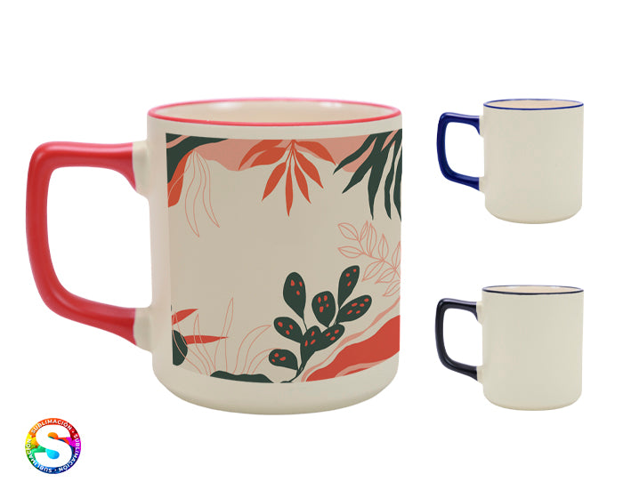 tarro de cerámica de sublimación con asa y filo de color. cap. 400 ml. (13.5 oz). venta en múltiplos de 12.