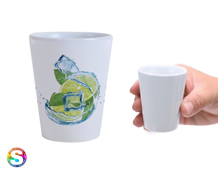 vaso tequilero de cerámica para sublimar. cap. 45 ml. (1.5 oz).