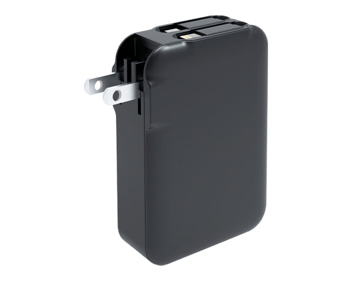 batería de carga rápida con función de adaptador de corriente plegable con capacidad de 5,000 mah. cuenta con pantalla digital que indica el porcentaje de la batería, entrada de carga tipo c (incluye cable de carga), botón de encendido/apagado y 2 cables de salida para carga de dispositivos móviles: 1 entrada tipo c y uno entrada para iphone. presentación: caja de regalo a color.