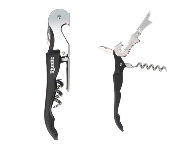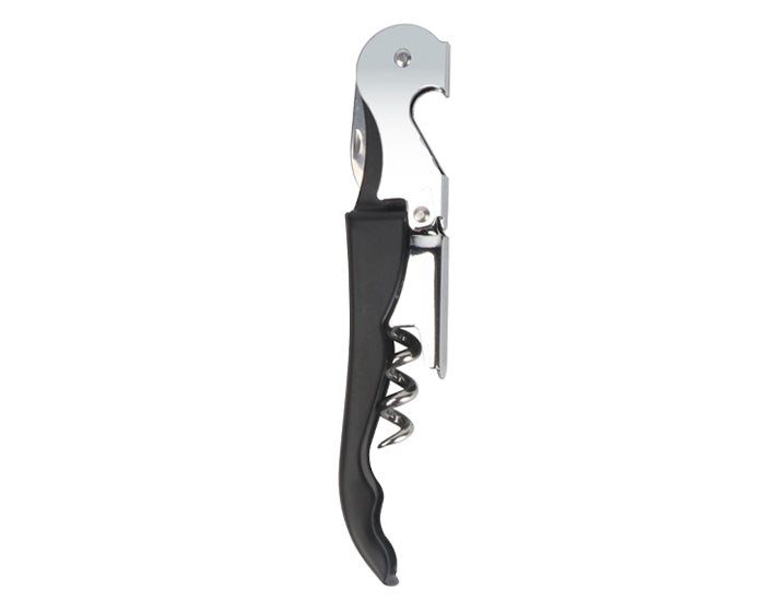 sacacorchos con destapador y navaja de acero inoxidable. presentación: caja individual de kraft.