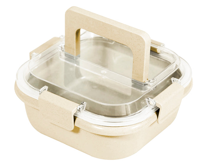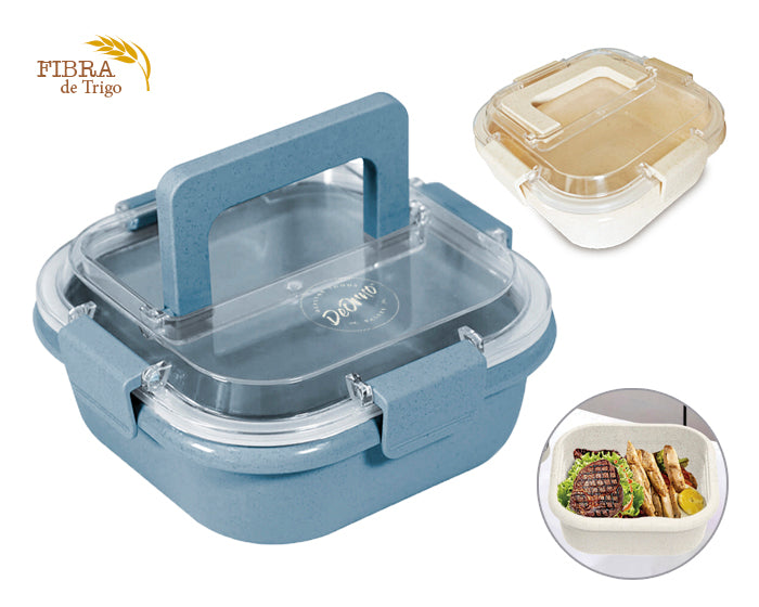 box lunch de fibra de trigo con tapa hermética de plástico con broches de seguridad y asa.