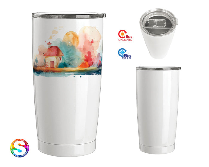 termo de doble pared para sublimación insulado al alto vacío. mantiene las bebidas frías por 10 hrs. y calientes por 6 hrs. tapa transparente de cierre a presión con seguro deslizable. cap. 600 ml. (20 oz.). presentación: caja en color negro.