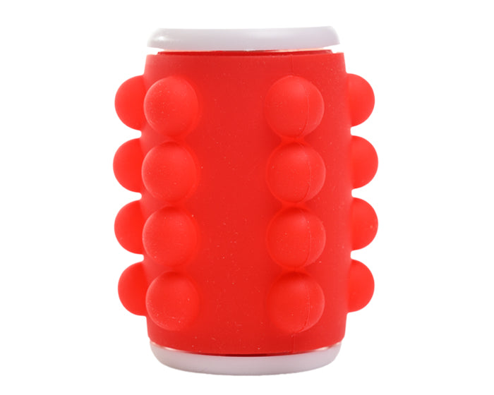 juguete antiestrés giratorio de bolsillo push pop en forma de barril. su diseño ergonómico facilita el agarre con una sola mano, se puede hacer girar y/o apretar las burbujas de plástico, lo que ofrece alivio para el estrés y ansiedad.