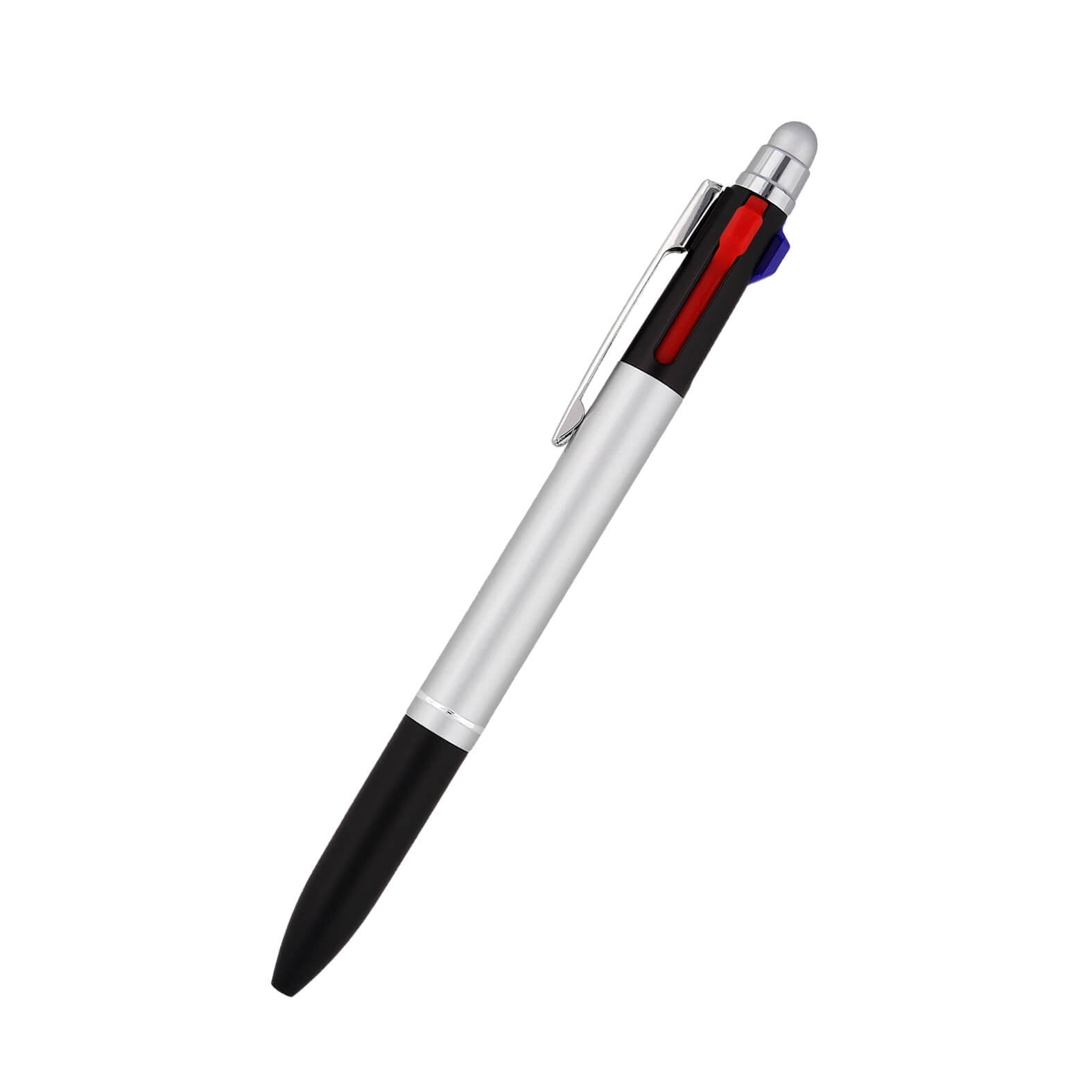 bolígrafo 3 en 1 con clip metálico y goma touch screen, tinta negra, roja y azul.