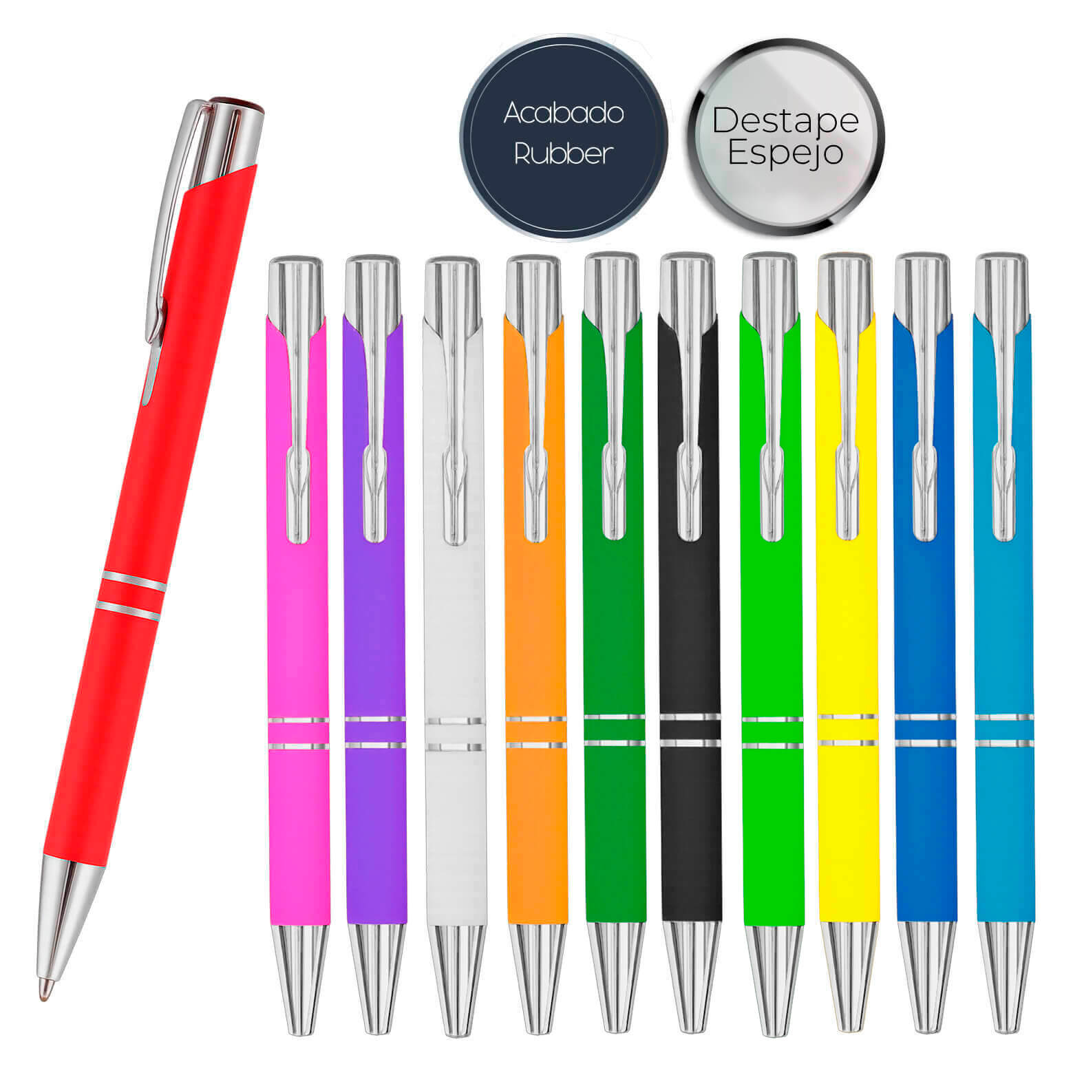 bolígrafo metálico con acabado rubber, clip y mecanismo de click.