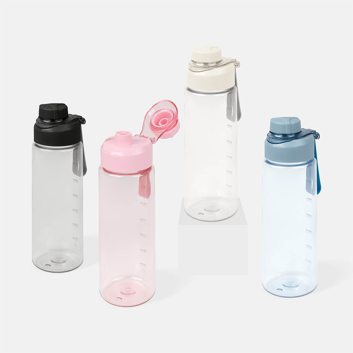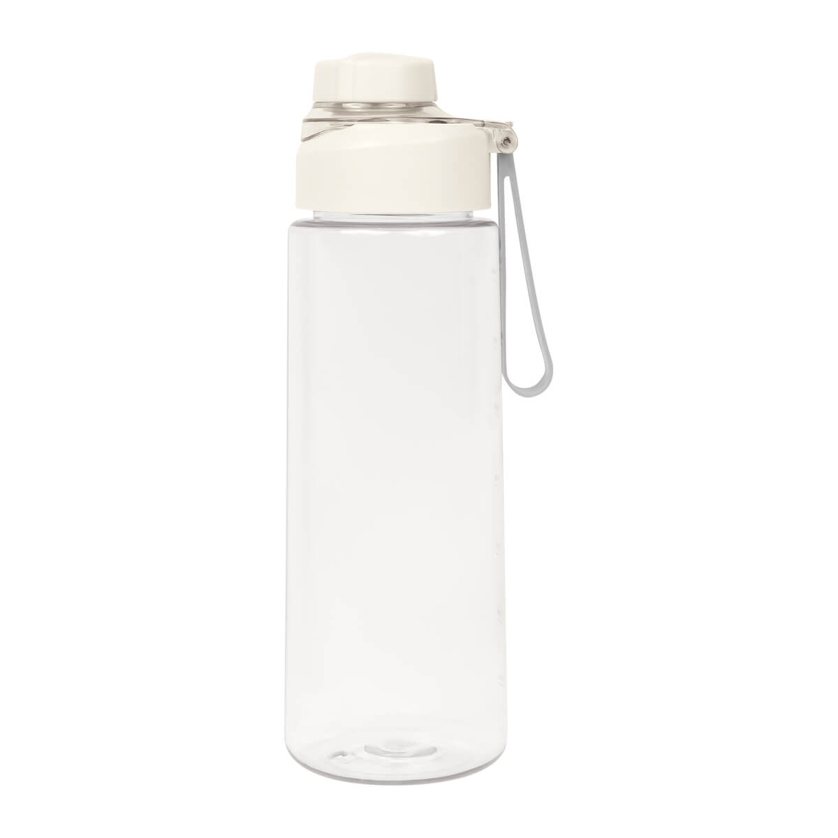 cilindro de plástico de una pared. tapa de plástico con sistema de rosca y sobretapa para la boquilla. cuenta con asa de silicón para llevarlo cómodamente e indicador de mililitros. perfecto para el día a día.