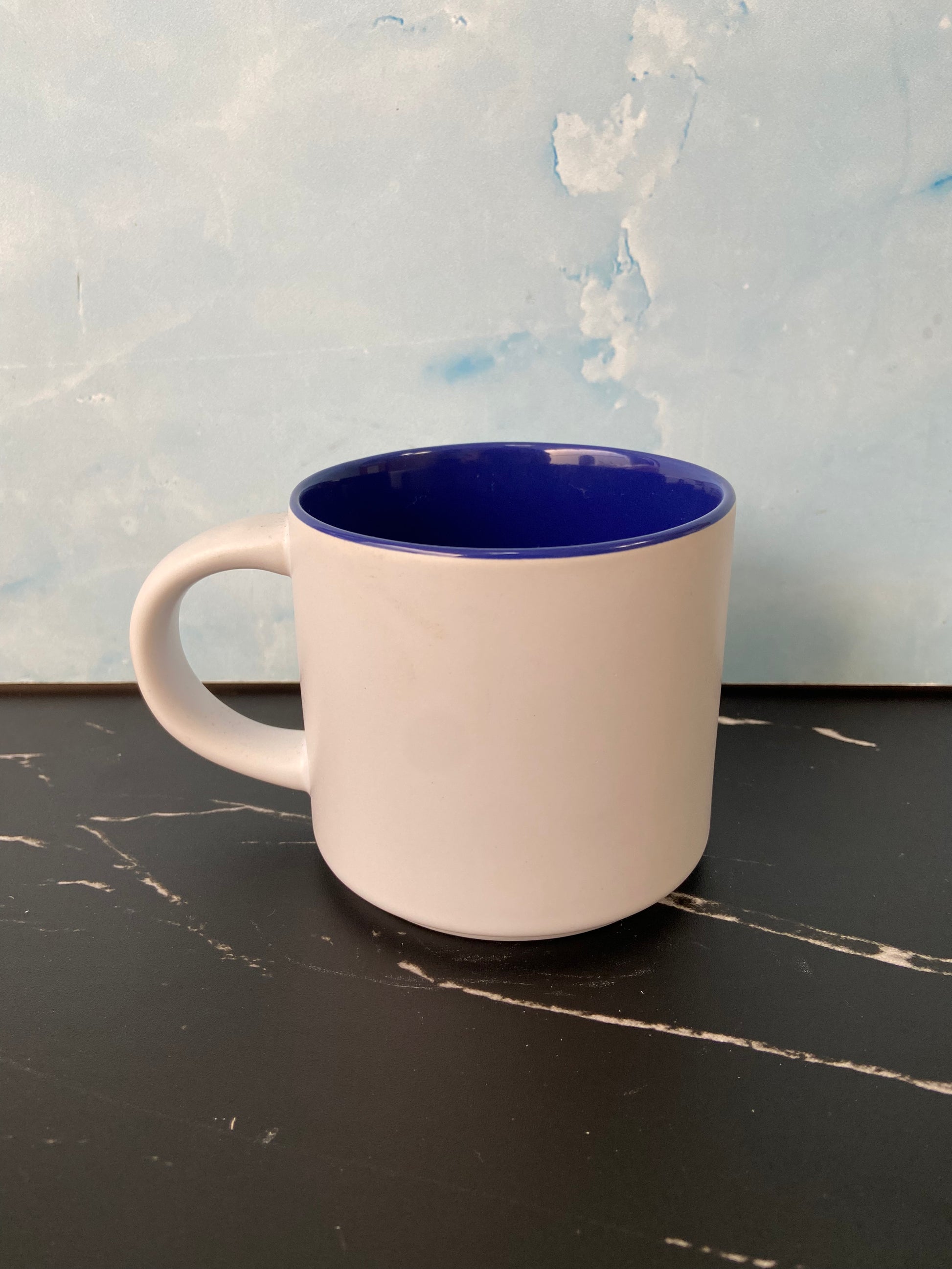 taza de cerámica bicolor apilable, con exterior blanco mate e interior en color brillante. cap. 15 oz. venta en múltiplos de 12.