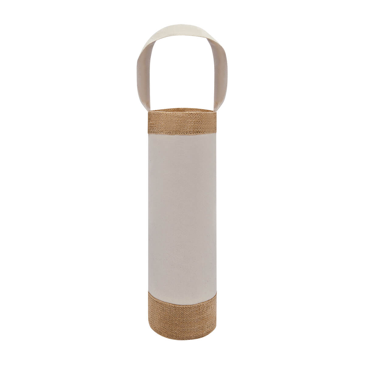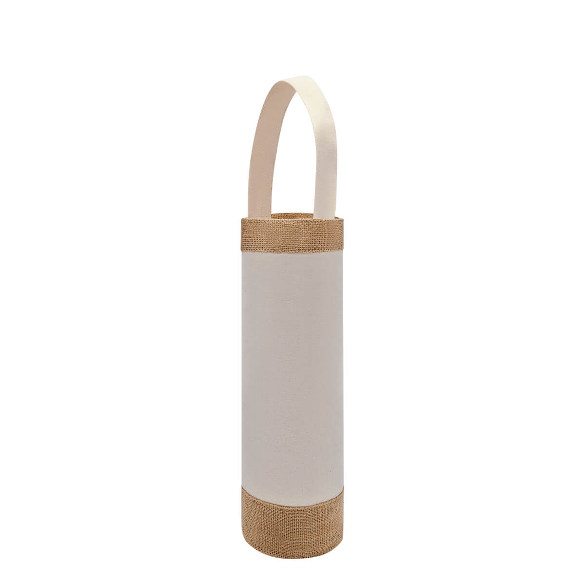 bolsa con asa y base circular. ideal para 1 botella de vino y llevarla contigo a cualquier lugar. el yute es un producto natural el cual puede presentar variaciones en tonalidades y en la urdimbre y trama de la tela.