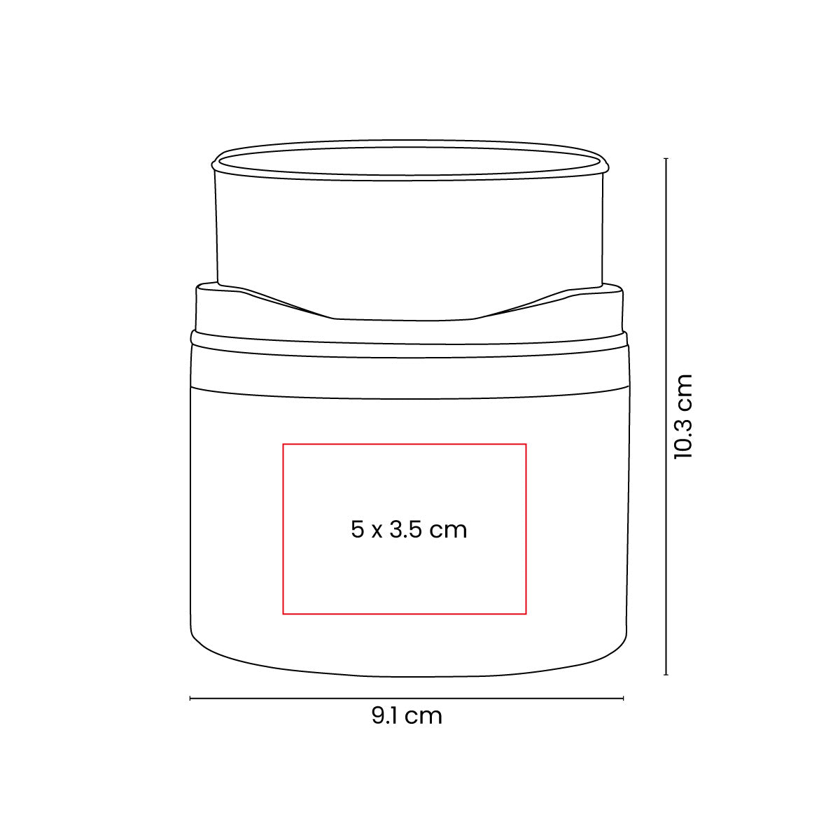área de impresión: 5 x 3.5 cm porta vaso / 4.5 x 4.5 cm vaso