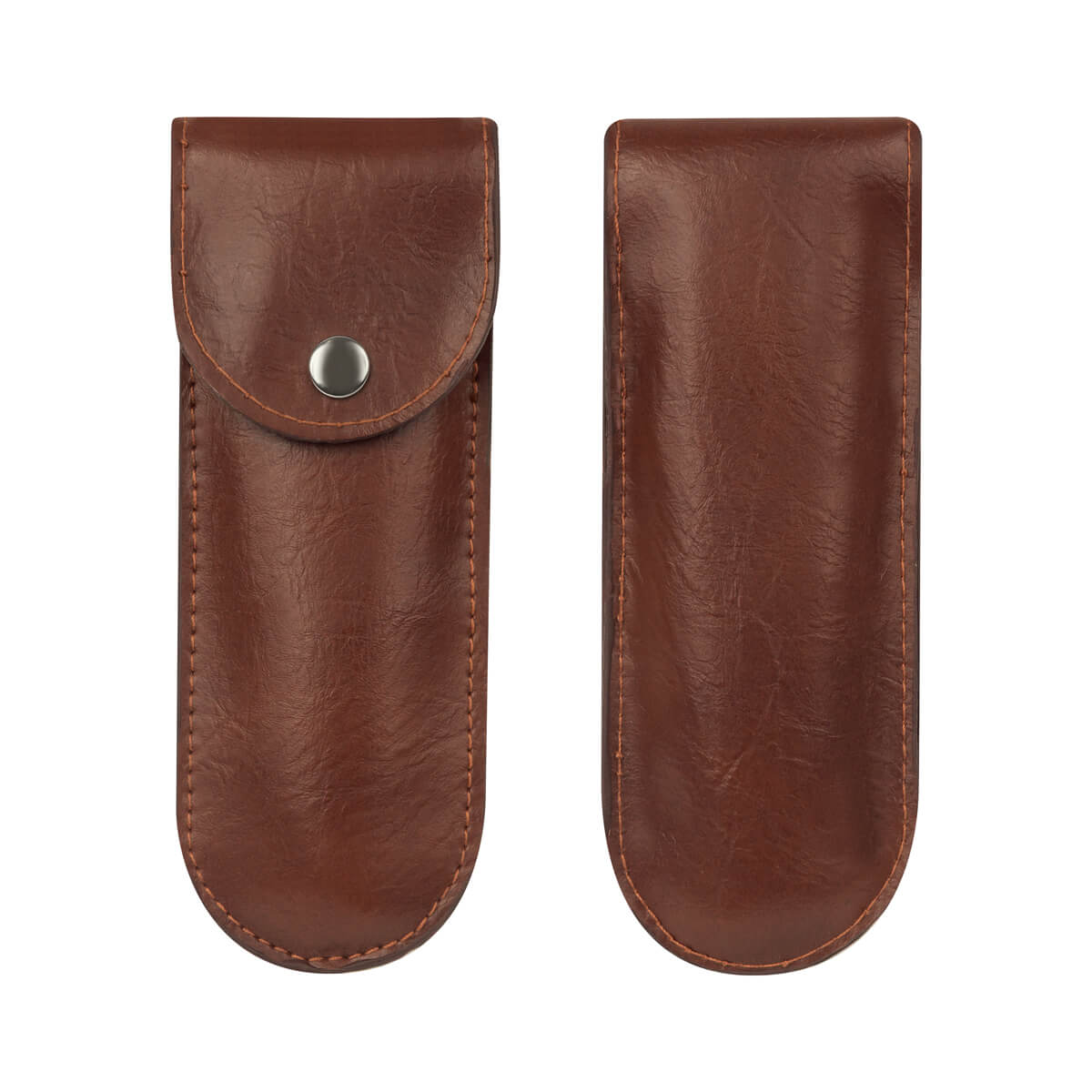 sacacorchos de acero inoxidable. ideal para los más aventureros. cuenta con un mango de madera, mecanismo de doble bisagra, sacacorchos, detapador de botellas y cortador de lámina dentado. incluye elegante funda de curpiel y caja individual.