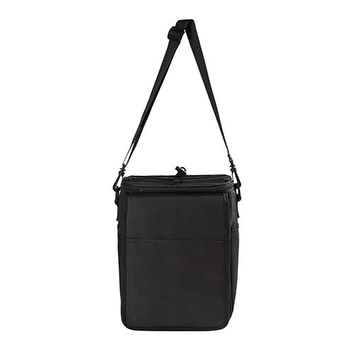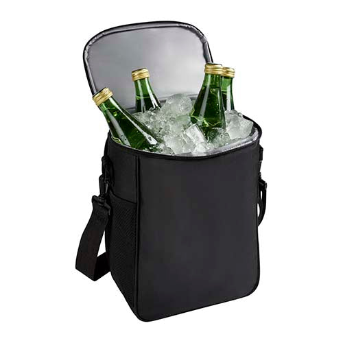 bolsa principal con función de hielera. capacidad para 12 latas. incluye bolsa frontal con 3 compartimentos internos para el set de cuchillo, espátula y tenedor. 2 bolsas laterales de red y correa ajustable.
